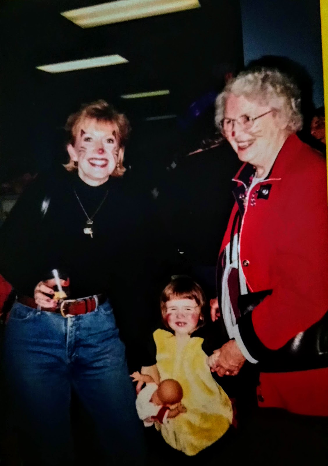 In the picture is a much younger me, and my wee Leanne who is now 19 years old(what!??!), and my beloved Mom, now gone some 11 years. Oh, how I miss her!!!