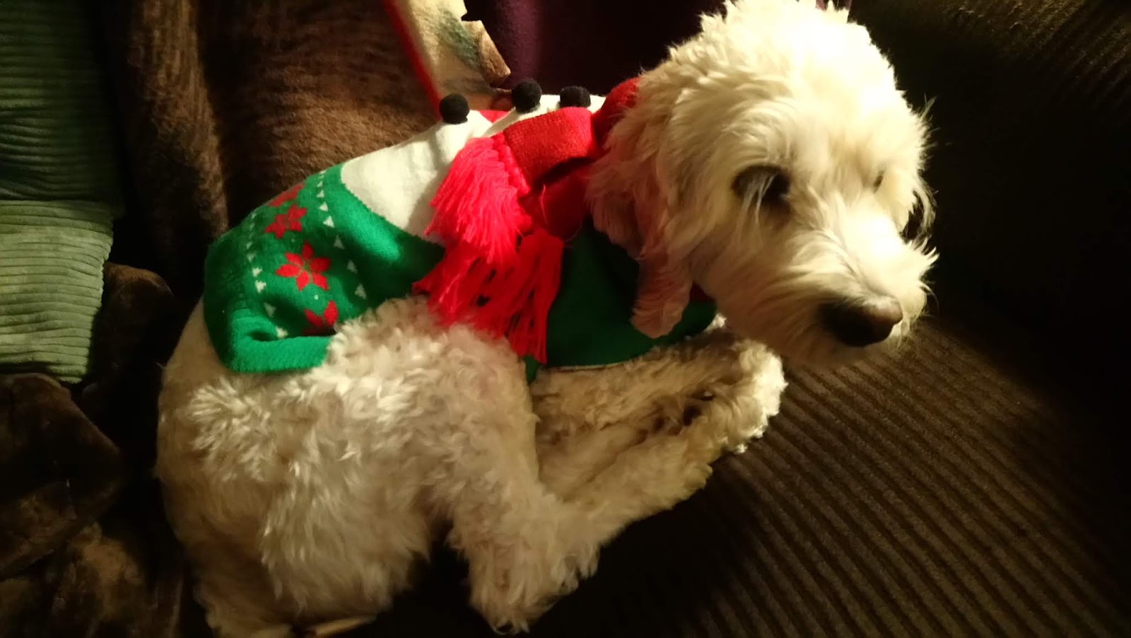 Molly, our sweet dog, lies still and cozy in her crate; the blankets and towels we have in there give her a soft place to land. She likes it there; it is her den.