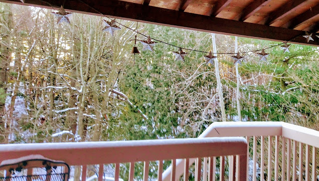 I notice the twinkle lights too; they frame the sliding glass doors glittering; they keep the gloom of winter at bay.